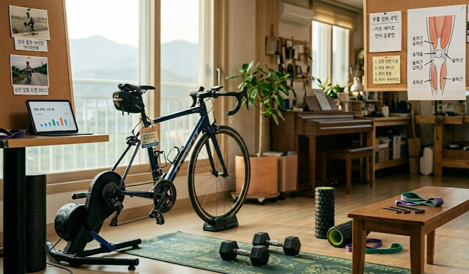 안장 세팅을 정교하게 잡은 뒤, 저는 근력 운동을 라이딩의 중요한 보조 수단으로 삼아 매일 아침 거실에서 15분씩 꾸준히 이어갔습니다. 이때 운동의 핵심은 특정 근육만 사용하는 고립 운동보다 여러 근육을 동시에 사용하는 복합 관절 운동 위주로 루틴을 구성하는 것이었습니다. 복합 관절 운동은 두 개 이상의 관절을 함께 움직여 대퇴사두근과 햄스트링, 둔근을 한꺼번에 자극하기 때문에 사이클링 효율을 높이는 데 훨씬 직접적으로 작용하기 때문입니다.